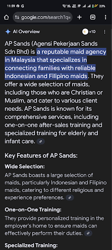 Result of how we help our maid agency in KL client to get on the AI Overview cited search ranking in 2025